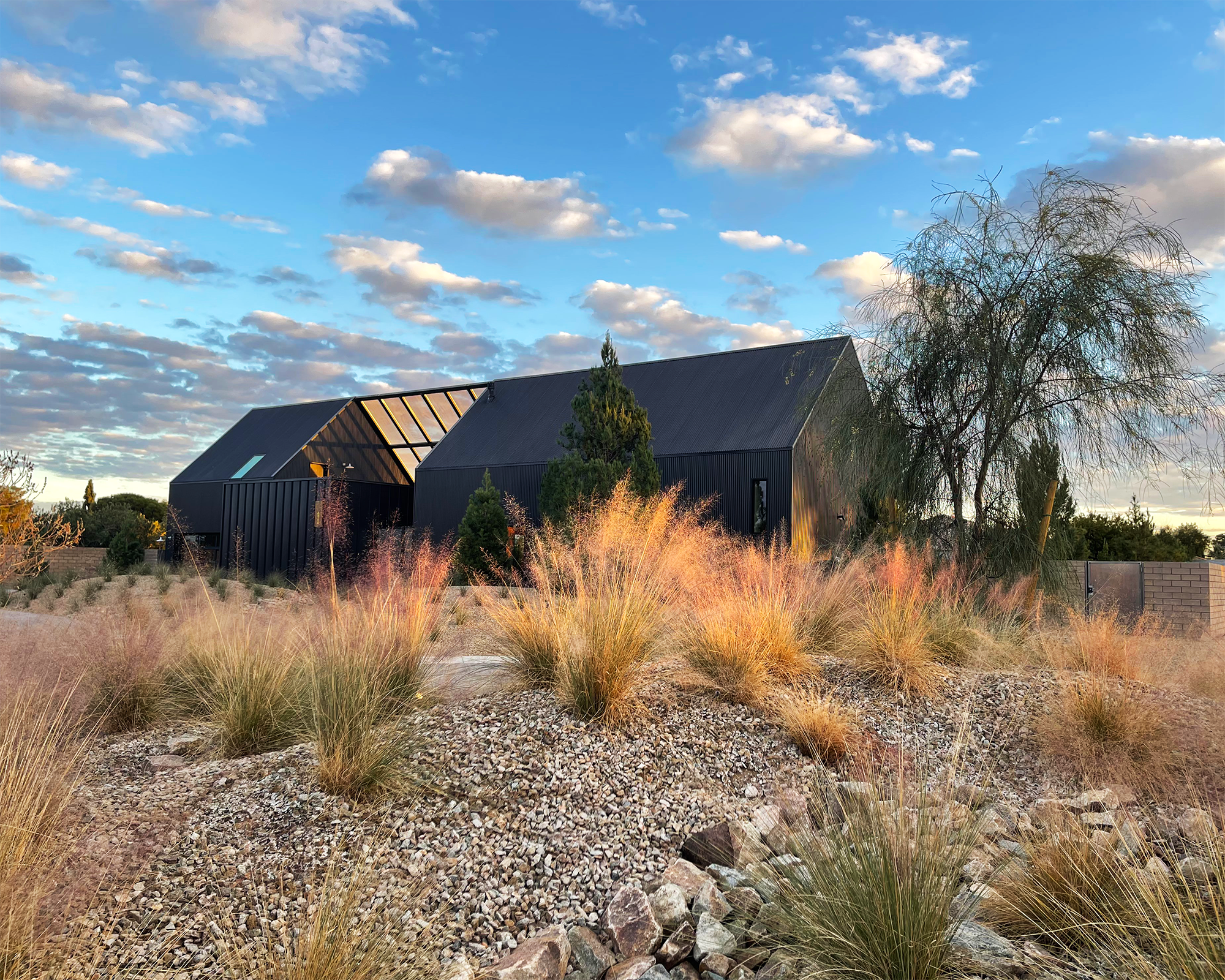 The project takes formal inspiration from the iconic dogtrot home, reimagined as a contemporary, urban residence. Located on a suburban infill lot, the design minimized square footage in favor of additional outdoor space. Interior spaces open out, visually and physically, to a lushly landscaped environment, encouraging the connection to nature.